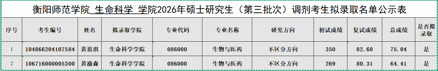 m88 m882026年硕士研究生(第三批次)调剂考生拟录取名单公示表