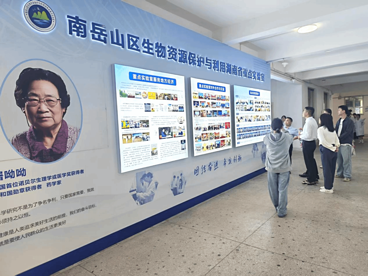 参访团队首先走进南岳山区生物资源保护与利用湖南省重点实验室,参观了实验室的展示长廊,详细了解了实验室依托南岳山区丰富生物资源,在资源保护、科研攻关以及成果转化等方面的丰硕成果,对实验室在生物领域的深厚积淀与创新实力表示高度认可。
